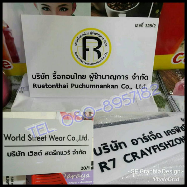 ป้ายใช้สำหรับจดทะเบียนยื่นภาษี หรือป้ายหน้าออฟฟิต เรายินดีบริการค่ะ