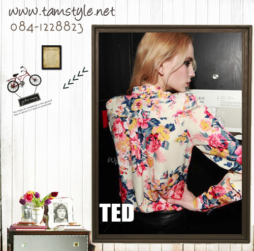 Top -058 เสื้อแขนยาวสีขาวลายดอก ตัวนี้ ผ้านิ่มใส่สบายมากเลยจ้า อก 34-36 ((สินค้าพร้อมส่งค่ะ))