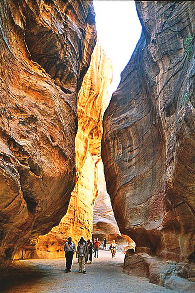 เมื่อ เราเดินทางถึงจุดพักนักท่องเที่ยวของเมือง Wadi Musa ที่อยู่ใกล้หุบเขามากที่สุดนั้น คนที่แรงดีก็สมัครใจเดินเท้าไปเอง ส่วนคนแรงน้อยหรือขี้เกียจก็จะมีพาหนะต่างๆรูปแบบไว้บริการ เช่นม้าหรือรถม้าเล็กๆ แต่ไม่ใช่อูฐ เพราะเขาจะเอาไว้ให้นักท่องเที่ยวถ่ายรูปเก็บเงินมากกว่า ในช่วงเช้าและบ่ายแก่ๆนั้น จะเป็นช่วงที่น่าชมมากที่สุด เพราะผาหินทรายจะได้รับแสงแดดที่พอเหมาะ และเปล่งสีแดงออกมาเต็มที่ และแสงเงาที่สาดส่องลงมานั้น จะโดนผนังสว่างเป็นบางส่วน ระหว่างทางเดินที่ลึกเข้าไปเรื่อยๆ สร้างบรรยากาศลึกลับซับซ้อน ชวนสงสัยขึ้นไปอีก