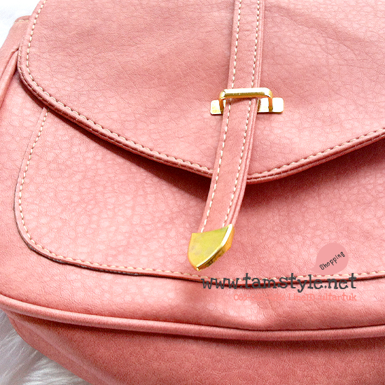 Bag-008 กระเป๋าสะพายสายเล็ก แต่งฝาสไตล์เกาหลี สีชมพู สายสะพายปรับระดับและถอดได้ (กระเป๋าพร้อมส่ง)