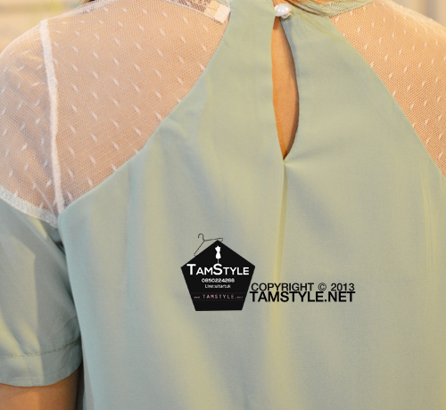 Top -109 เสื้อทรงแขนสั้น สีส้มครีมแต่งผ้าตาข่ายช่วงบนสไตล์แบรนด์ Shaka siamcenter มีซับในทั้งตัว สาวๆคนไหนที่ไม่มั้นใจโชว์ไหล่หรือแขนอก 36 " (เสื้อพร้อมส่ง)