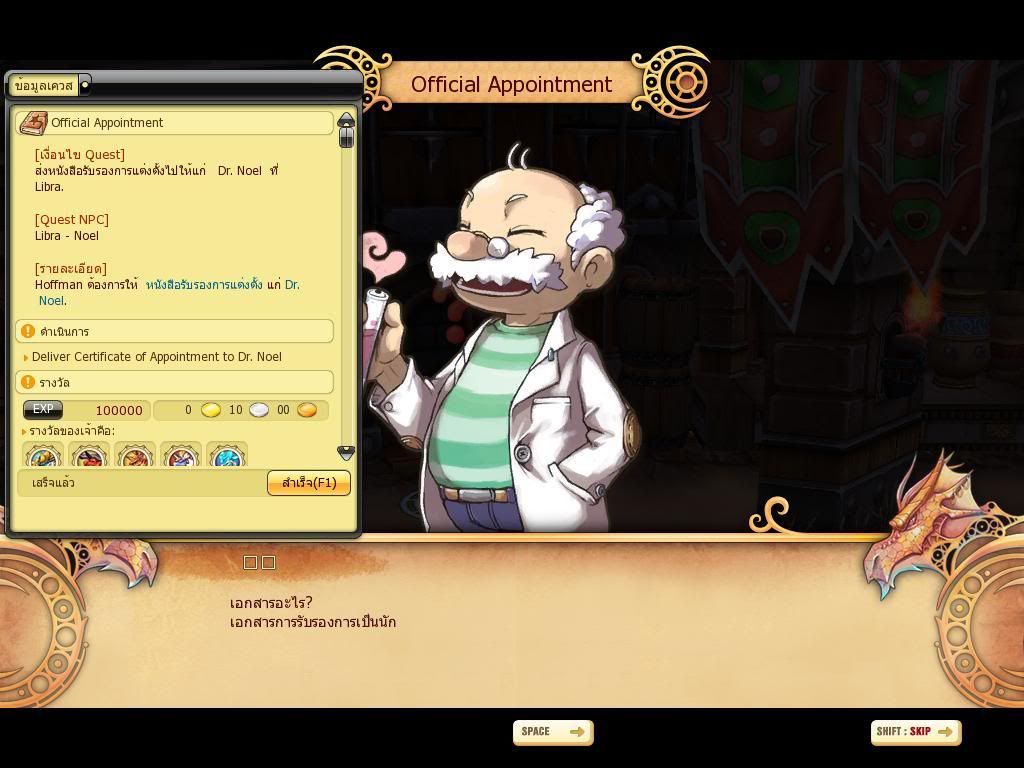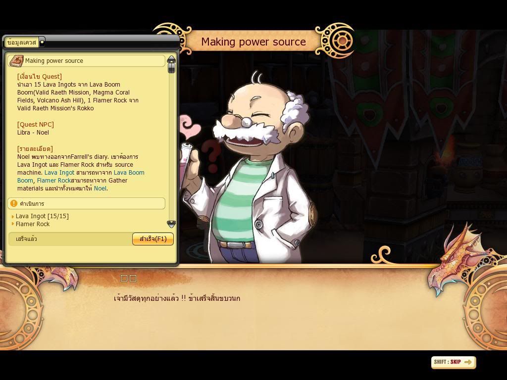ไปส่งที่ NPC ชื่อสี่เหลี่ยมอีกครั้ง เป็นอันเสร็จเควสลง F7 ครับ