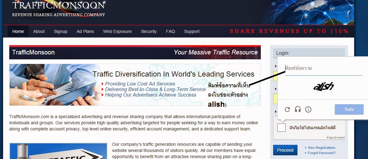พิมพ์ตัวอักษรที่เห็นลงในช่องว่างแล้วกดยืนยัน ถ้าพิมพ์ถูกจะเป็นแบบนี้ถ้าพิมพ์ผิดให้รีเฟรชใหม่อีกรอบ เมื่อพิมพ์ถูกแล้วกดproceedเข้าหน้าเว็บ