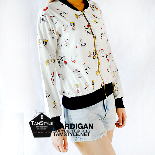 Coat-106 เสื้อคลุมสีขาว ซิบหน้า ลายการ์ตูน แขนยาว ผ้าใส่สบาย กันแดด กันลมสบายจ้า อก 35" ยาว 23 " (เสื้อคลุมพร้อมส่ง)