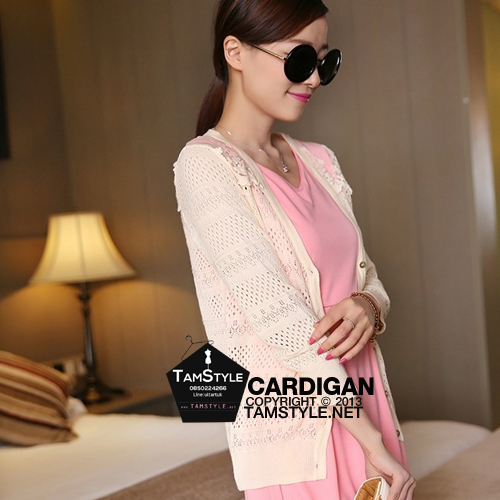 เสื้อคลุม Cadigan แขนยาว สีครีม งานนำเข้า ใส่ได้หลาย โอกาส