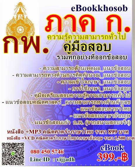 จำหน่ายเอกสารแนวข้อสอบ กพ. ภาคความรู้ความสามารถทั่วไป ตรงตามหลักสูตรการสอบของ กพ.จำหน่ายเอกสารคู่มือสอบ แนวข้อสอบ ความรู้ความสามารถทั่วไป วิชาภาษาอังกฤษ อัพเดทล่าสุดจำหน่วยคู่มือสอบ ติวข้อสอบ เน้นๆ เนื้อหาสรุป+เก็งข้อสอบ แนวข้อสอบ กพ.