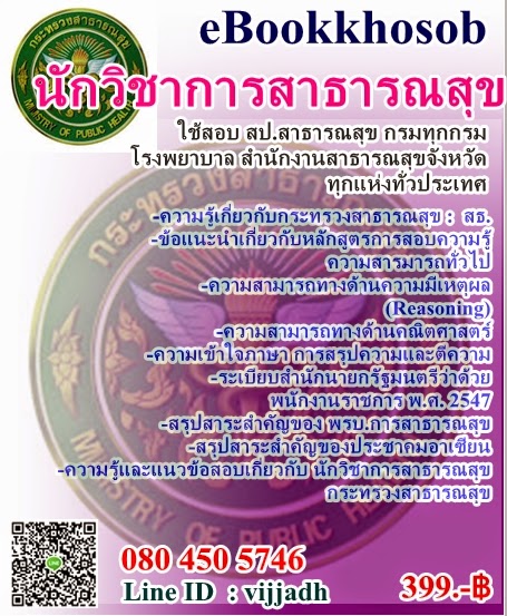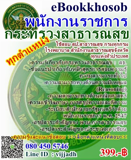 คู่มือสอบ แนวข้อสอบ พนักงานราชการ กระทรวงสาธารณสุข ใช้สอบ กรมทุกกรม โรงพยาบาล สำนักงานสาธารณสุขจังหวัด ทุกแห่ง ทั่วประเทศ อัพเดททุกวัน