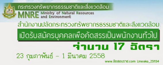 สำนักปลัดกระทรวงทรัพยากรธรรมชาติและสิ่งแวดล้อม เปิดสมัครบุคคลเพื่อคัดสรรเป็นพนักงานทั่วไปหลายตำแหน่ง