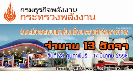 กรมธุรกิจพลังงาน กระทรวงพลังงาน ประกาศกรมธุรกิจพลังงาน เรื่อง รับสมัครสอบแข่งขันเพื่อบรรจุและแต่งตั้งบุคคลเข้ารับราชการในกรมธุรกิจพลังงาน