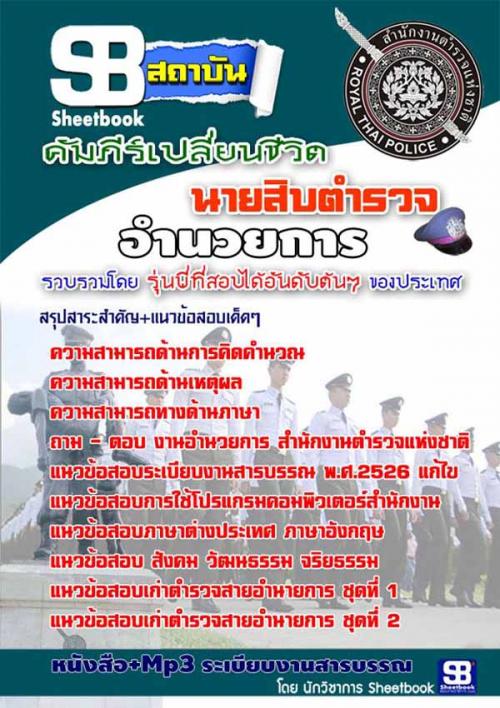 -คู่มือเตรียมสอบสำหรับสอบ นายสิบตำรวจ สายอำนวยการ ข้อสอบที่ออกบ่อยๆแต่ละปี และแนวข้อสอบจากรุ่นพี่ที่สอบจากสนามจริง มารวบรวมไว้ในเล่มเดียว