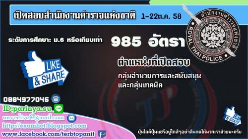 ตำแหน่ง: ประกาศแล้ว!! สอบตำรวจ กลุ่มอำนวยการและสนับสนุน และกลุ่มเทคนิค รวม 985 อัตรา