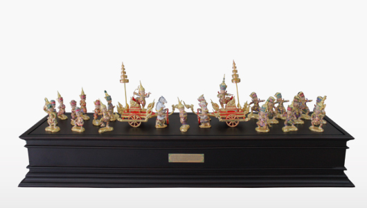 สำหรับผู้ที่ชื่นชอบความเป็นไทย หรือชอบรามเกียรติ์ ต้องไม่พลาดกับของแต่งบ้านสุดน่ารักอันนี้เลยค่ะตุ๊กตาเซรามิค มาในชุดรามเกียรติ์ ถือได้ว่าเป็นของตั้งโชว์ที่ไม่ธรรมดาเลยจริงๆ ค่ะ เพราะในชุดนั้น มีการวาดลวดลายเบญจรงค์ และปิดด้วยทองคำแท้ๆ 100% สามารถถอดหัวได้อีกด้วย