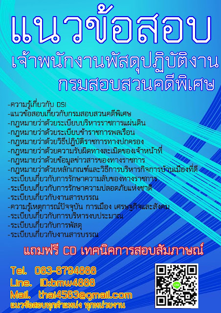 แนวข้อสอบเจ้าพนักงานพัสดุปฏิบัติงาน กรมสอบสวนคดีพิเศษ DSI