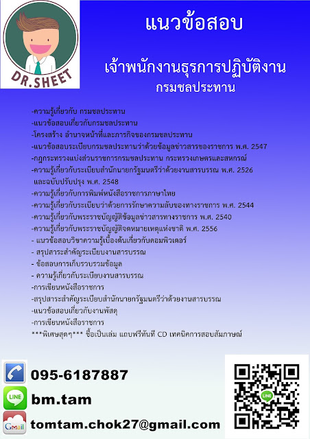 แนวข้อสอบเจ้าพนักงานธุรการปฏิบัติงาน กรมชลประทาน
