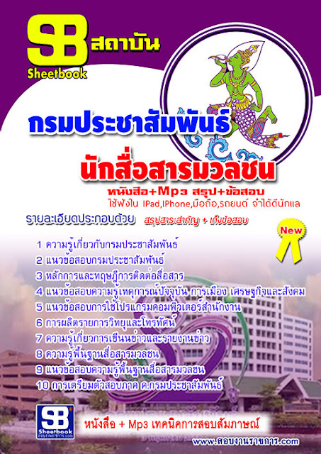แนวข้อสอบ นักสื่อสารมวลชน กรมประชาสัมพันธ์1 ความรู้เกี่ยวกับกรมประชาสัมพันธ์2 แนวข้อสอบกรมประชาสัมพันธ์3 หลักการและทฤษฎีการติดต่อสื่อสาร4 แนวข้อสอบความรู้เหตุการณ์ปัจจุบัน การเมือง เศรษฐกิจและสังคม5 แนวข้อสอบการใช้โปรแกรมคอมพิวเตอร์สำนักงาน6 การผลิตรายการวิทยุและโทรทัศน์7 ความรู้เกี่ยวการเขีนนข่าวและรายงานข่าว8 ความรู้พื้นฐานสื่อสารมวลชน9 แนวข้อสอบความรู้พื้นฐานสื่อสารมวลชน10 การเตรียมตัวสอบภาค ค.กรมประชาสัมพันธ์mp3 เทคนิคการสอบสัมภาษณ์