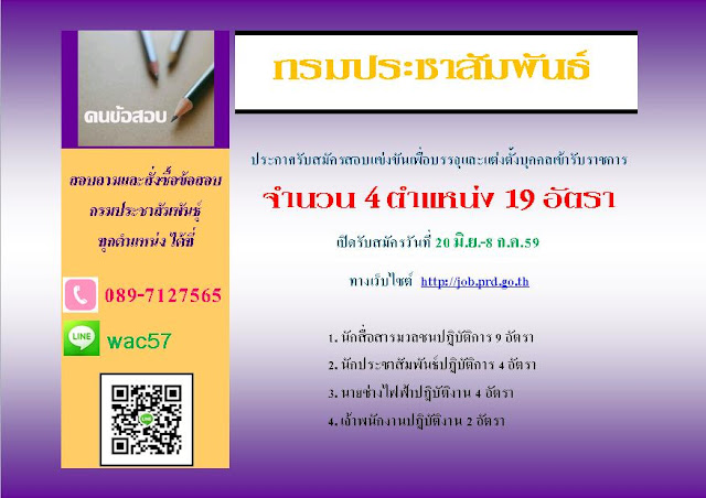 เปิดรับสมัครวันที่ 20 มิ.ย.-8 ก.ค.59 ทางเว็บไซต์ http://job.prd.go.th