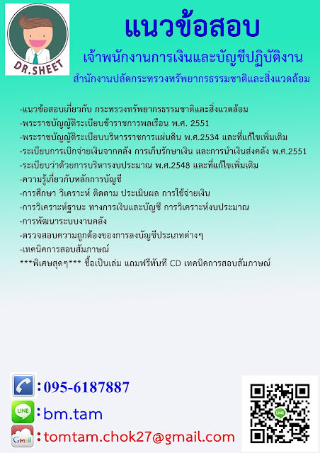 แนวข้อสอบเจ้าพนักงานการเงินและบัญชีปฏิบัติงาน สำนักงานปลัดกระทรวงทรัพยากรธรรมชาติและสิ่งแวดล้อม