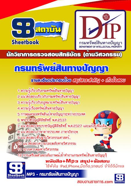 >>> ไม่ต้องเสียเวลาไปนั่งติว ไม่ต้องเสียตังมากมาย สามารติวสอบเองได้เลย <<<---------------------------------------------------------------------------------------------แนวข้อสอบ นักวิชาการตรวจสอบสิทธิบัตร (ด้านวิศวกรรม) กรมทรัพย์สินทางปัญญา1 ความรู้เกี่ยวกับกรมทรัพย์สินทางปัญญา2 แนวข้อสอบเกี่ยวกับกรมทรัพย์สินทางปัญญา3 ความรู้เกี่ยวกับกฎหมายทรัพย์สินทางปัญญา4 ความรู้เรื่องทรัพย์สินทางปัญญา5 การคุมครองทรัพสินย์ทางปัญญาระหว่างประเทศ6 พระราชบัญญัติลิขสิทธิ์ พ.ศ.25377 แนวข้อสอบพระราชบัญญัติลิขสิทธิ์ พ.ศ.2527 และแก้ไขเพิ่มเติม8 แนวข้อสอบภาษาต่างประเทศ ภาษาอังกฤษ9 แนวข้อสอบพื้นฐานวิศวกรรมศาสตร์..10 แนวข้อสอบความปลอดภัยทางวิศวกรรม11 ระบบควบคุมทางวิศวกรรม12 การเตรียมตัวสอบสัมภาษณ์เข้าทำงานกรมทรัพย์สินทางปัญญาMP3 - กรมทรัพย์สินทางปัญญา--------------------------------------------------------------------------------------------- ---------------------------------------------------------------------------------------------