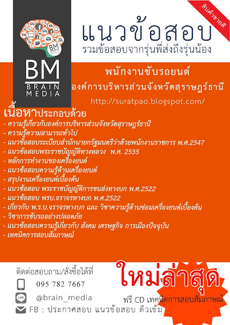 แนวข้อสอบพนักงานขับรถยนต์ องค์การบริหารส่วนจังหวัดสุราษฎร์ธานี
