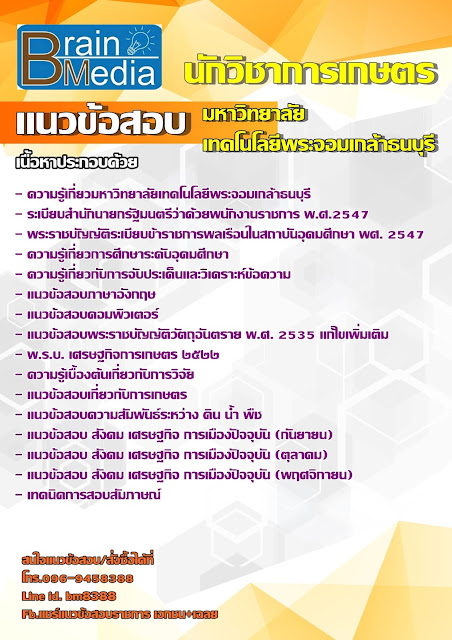 โหลดแนวข้อสอบ นักวิชาการเกษตร มหาวิทยาลัยเทคโนโลยีพระจอมเกล้าธนบุรี