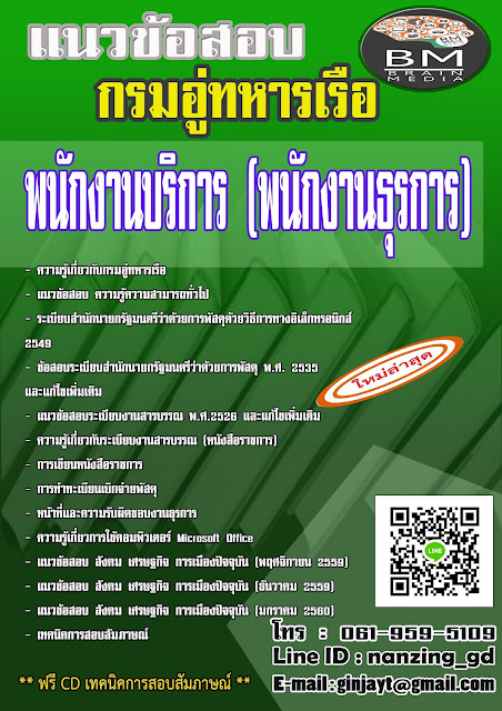 โหลดแนวข้อสอบ พนักงานบริการ (พนักงานธุรการ) กรมอู่ทหารเรือ