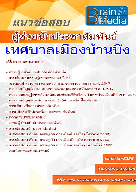 โหลดแนวข้อสอบ ผู้ช่วยนักประชาสัมพันธ์ เทศบาลเมืองบ้านบึง