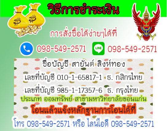 ชื่อบัญชี สายันต์ สิงห์ทอง สาขา มหาวิทยาลัยขอนแก่น