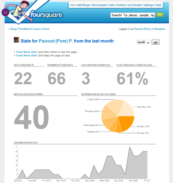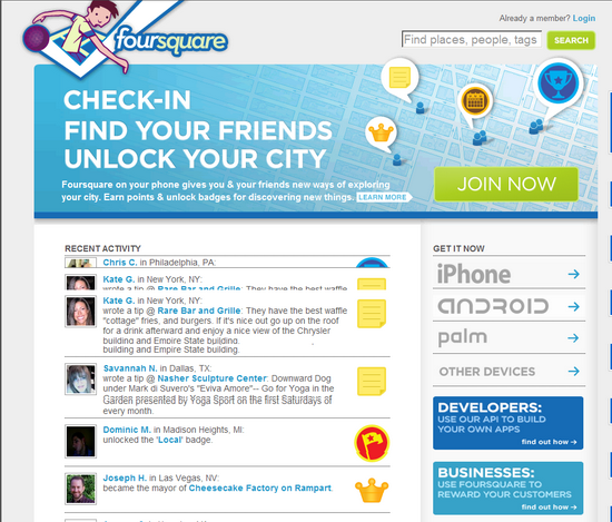 - การบอกต่อให้เพื่อนๆ ได้รู้ (Social Network)อย่างที่เกริ่นในตอนต้น เมื่อคุณ Check-in สถานที่ไหนก็ตาม FourSquare ก็จะทำการบอกเพื่อนๆ ใน Social Network ของคุณไม่ว่าจะเป็น Twitter หรือ Facebook ทำให้เพื่อนๆ คุณรู้ว่าคุณอยู่ไหนบ้าง