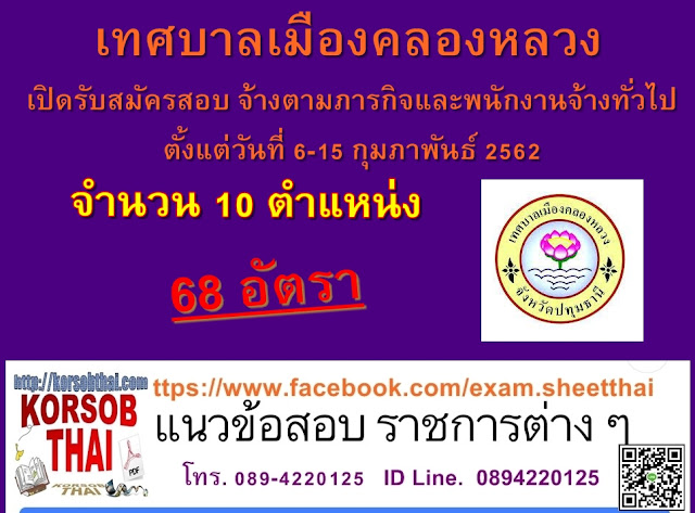 วิธีการสมัครงานข้าราชการ เทศบาลเมืองคลองหลวง : ด้วยตนเอง