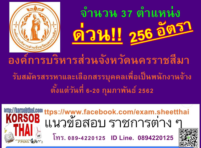 แนวข้อสอบ องค์การบริหารส่วนจังหวัดนครราชสีมา ใหม่ล่าสุด