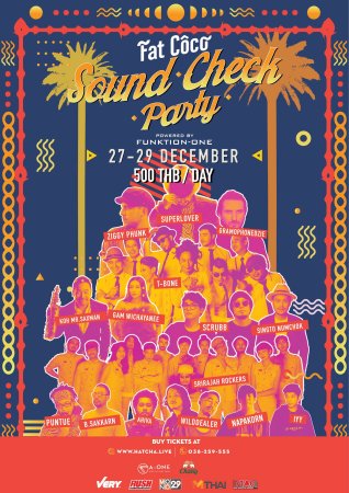 "Sound Check Party" วันที่ 27-29 ธันวาคม 2562 ที่ร้าน Fat Coco โรงแรม เอ-วัน เดอะ รอยัล ครูส กับศิลปินแนวหน้าของไทย อาทิ