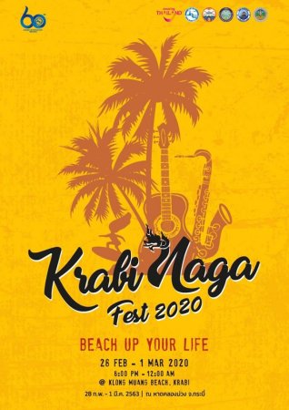 "Krabi Naga Fest 2020" ในวันที่ 28 กุมภาพันธ์ 2563 - 1 มีนาคม 2563 เวลา 18.00 น. ณ หาดคลองม่วง จังหวัดกระบี่ เพิ่มจังหวะดนตรีให้ชีวิต ผ่านสายลมและเสียงคลื่นกับศิลปิน อาทิ
