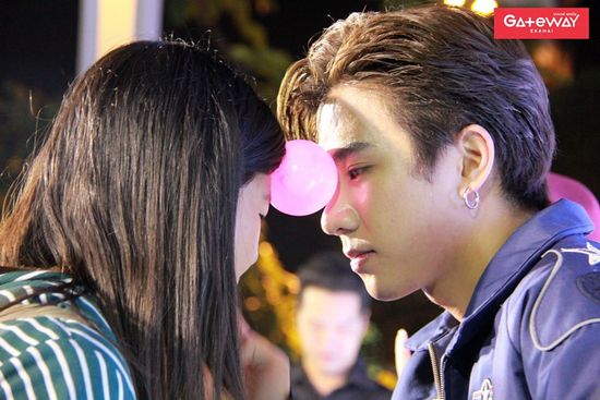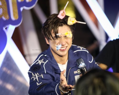 ในงานยังมีเกมให้เพิร์ธเล่นกับแฟนคลับด้วยค่ะ คือการให้ใช้หน้าผากลำเลียงลูกบอลไปใส่ไว้ในกระเป๋าให้สำเร็จ