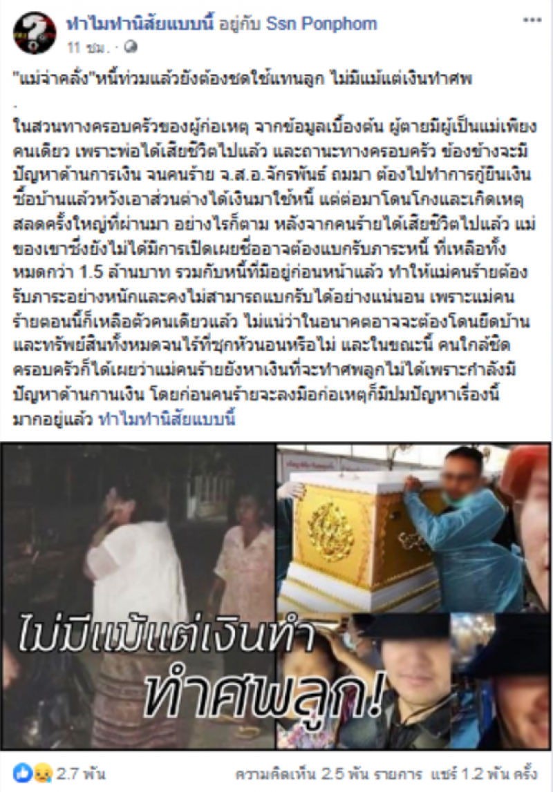 จากกรณีความวุ่นวายในจังหวัดนครราชสีมา ล่าสุดเพจที่ใช้ชื่อว่า ทำไมนิสัยแบบนี้ ได้ออกมาโพสต์ถึงประเด็นที่แท่จ่าจักร ติดหนี้ และในตอนนี้ก็ทิ้งหนี้ไว้ให้แม่ และแม่ก็ไม่ญาติที่ไหน ทำให้ไม่มีเงนมาจัดงานให้จ่าจักร และไหนจะหนี้รวมทั้งหมด ไม่รู้ว่าคนเป็นแม่จะอยู่ต่อไปยังไง โดยแม่จ่าจักรนั้นยังต้องแบกรับภาระหนี้สินทั้งหมด1จุด5ล้าน โดยได้ระบุข้อความว่า
