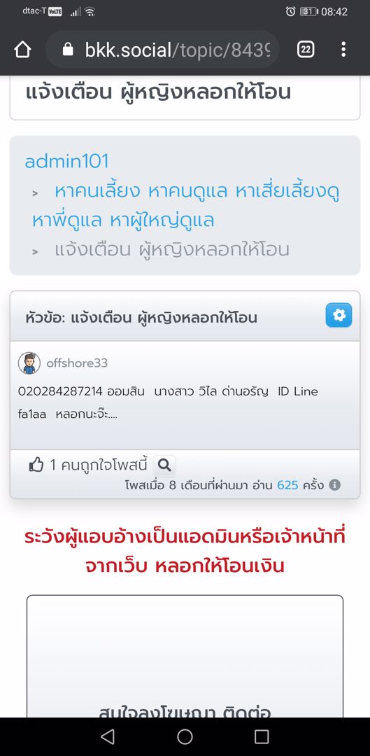 ตอนนี้มีบุคคลแอบอ้างตัวเองว่าเป็นแอดมินจากเว็บ bkk.social โดยใช้ไอดีไลน์ bkksocial ซึ่งไม่ใช่แอดมินจริงๆ และทางแอดมินไม่เคยมีส่วนเกี่ยวข้องใดๆกับการจัดหาน้องๆ หรือเป็นตัวกลางเก็บเงินมัดจำใดๆทั้งสิ้น